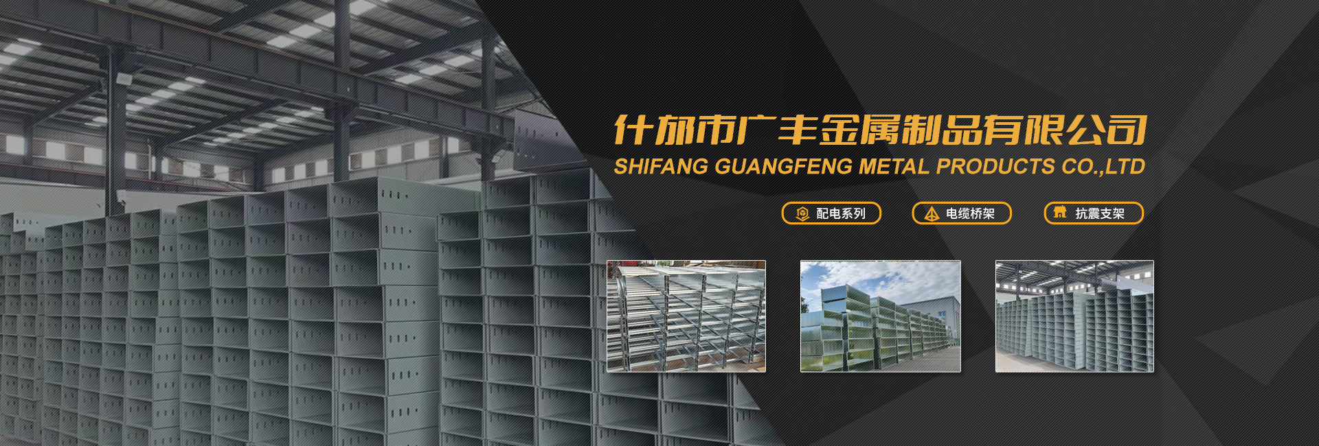 什邡市廣豐金屬制品有限公司是專業從事輸配電系列產品、電纜橋架、抗震支架開發、設計、制造、施工的一體化企業。 主要產品有:槽式、梯式、托盤式組合等熱軋、冷軋電纜橋架系列,有靜電噴塑、噴塑、鍍鋅、熱鍍鋅、熱浸鋅、鍍鋅鎳等表面處理,結構輕、強度大、壽命長、安全規范、外形美觀、安裝維修簡單方便,是電纜、管纜、井道鋪設、樓板梁下吊裝、室內外墻壁、電纜溝壁上的側裝、露天立柱或支墩上安裝的標準化、系列化、通用化設備。